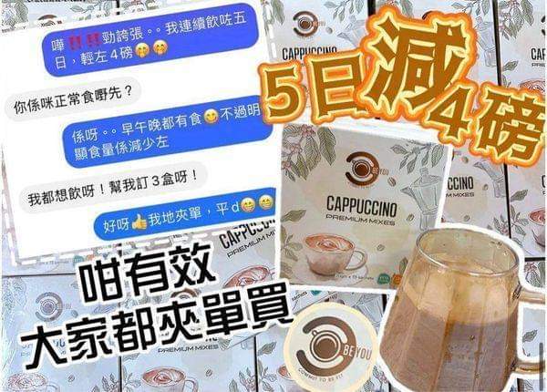 一定會爆既産品Be You 減肥咖啡(1盒15包) 截單日期:20/11 到貨日期:12月尾 ⚠️貨期有早有遲 堅係得推介瘦身咖啡,店主飲咗兩個月成功瘦身18磅,成效💯 ,想瘦身嘅一定要試呢款,超掂。 6大優質成分: 藤黃果、羥基檸檬酸、白腰豆、消化酶、左旋肉鹼、活性成分。 Be You 減肥咖啡通過「脂肪阻隔 ➕燃脂模式」原理,加速新陳代謝和脂肪燃燒,讓你消耗更多的熱量,控制飲食減少胃口、感覺飽足感,消水腫。 功效和好處 : 控制食慾。 消除水腫。 阻隔及排出脂肪。 加速新陳代謝率,加速自體燃燒。 通過體質,把易胖和容易水腫的體質轉化為瘦身健康。 是專業研究研發,根據體重管理的飲食科學新概念來阻隔咖啡的原理,通過“脂肪燃脂模式”是目前最輕鬆和安全的減肥方法。 勢必讓你達到瘦身和自信的效果。 建議每天1包,在吃完早餐時搭配飲用,喝咖啡最好在用餐後飲用,因為它可以促進腸胃的蠕動,幫助消化,可以分解剛吃下去的高熱量、高脂食物,也比較不會因為空腹喝咖啡而對腸胃帶來刺激。 本品採用高級進口的原材料,通過專業科研團隊調配的最新配方,效果絕對讓你滿意。 咖啡中的咖啡因本身具有利尿、消水腫、加速新陳代謝的作用,會帶走身體裡的水份,如果你本來水份不夠的話,喝了咖啡就會感覺到口渴,再來藤黃果的作用,新陳代謝加速了,體內脂肪開始燃燒,身體需要大量的水份,如果水喝不夠的話,就會一直感覺口渴,這現象是身體給我們的警示,告訴我們需要補充水份了。 馬來西亞GMP工廠包裝,ISO測試。 食用方法: 打開 1 小包混合在 150ml-200ml 溫水中,攪勻並飲用。 1盒15包 (6盒為一個療程3個月) 每日朝早服用一包就可以(唔建議太夜飲,每天額外補充至少1.5L的清水) 溫馨提示: 兒童、孕婦及哺乳期婦女禁止服用。 身體有疾病或在服用藥物者,請先咨詢醫生的意見,是專業研究研發,根據體重管理的飲食科學新概念來阻隔咖啡的原理,通過“脂肪燃脂模式”是目前最輕鬆和安全的減肥方法。