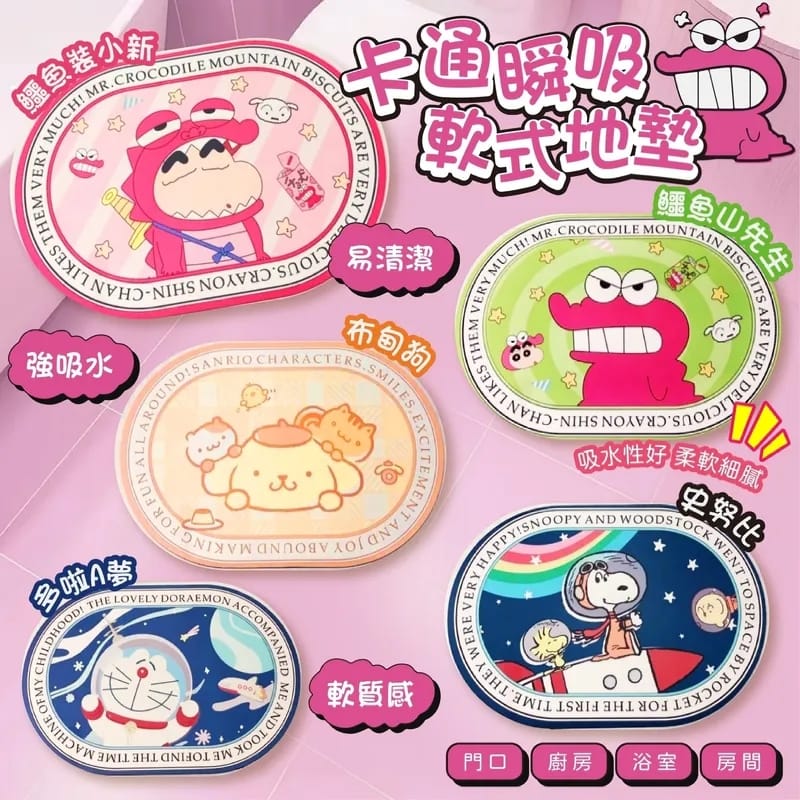 卡通瞬吸軟式地墊 截單日期:10/7 到貨日期:8月尾 ⚠️貨期有早有遲 快速吸水,親膚觸感,清潔容易,瞬吸軟式造型地墊。 背面橡膠交叉紋,防滑不易移動,各種場所皆適用,玄關大門、浴室、臥室、廚房。 清潔方式: 表面用濕抹布輕輕擦拭表面,軟式刷具輕刷再用清水沖洗,洗淨後陰涼處風乾。 款式選擇: 鱷魚裝小新 鱷魚山先生 布甸狗 多拉A夢 史努比 產地:PRC 規格:40 x 60 cm 注意事項:外包裝會有些許簡體字,介意者請勿下單。 顏色或因拍攝器材或顯示螢幕等因素而與實物有異,以上圖片及文字僅供參考,一切以實物為準。 以上資料及外盒包裝只供參考,商品外盒原廠有更換新包裝權利,一切以實物為準。 📌落單備註註明款式 會員價只供批發店主,需要提供証明方可享用會員價