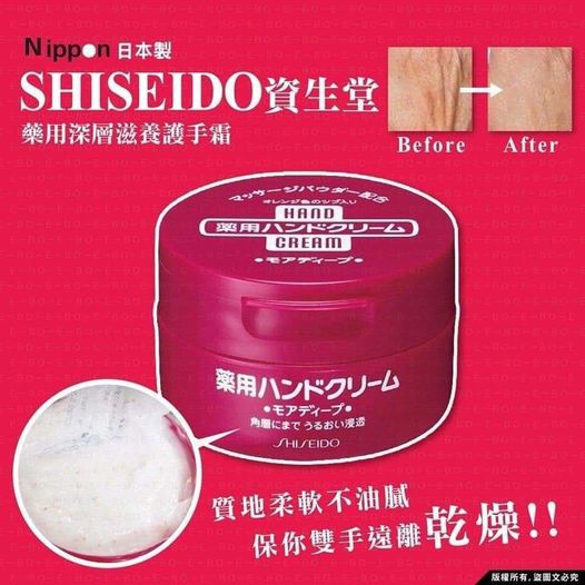 資生堂 尿素護手霜 100G(罐裝) 截單日期:有單即報,隨時售罄 到貨日期:11月中 ⚠️貨期有早有遲 滲透滋養無香料,美容級護手新概念,手部肌膚修護再升級,讓您感受 「美肌般的護手霜」 全天候日以繼夜的細密 " 手護 "要您成為完美水嫩的手肌美人。 秋冬近了,擁有一雙嬌嫩、纖長、柔滑的玉手,是每位女性朋友的夢想,資生堂光彩彈力護手霜含有豐富維他命成份及滋潤成份,改善手部粗糙及老化現像。 特別添加了超級彈力成分,讓您的雙手富有光采和彈性。清爽的質地,令肌膚更容易吸收,添加多一點滋潤、柔軟的新尿素成份,加強肌膚表層血液循環,防止皮膚干裂粗糙,給你的雙手最好的呵護。 此款護手霜有藥用修護作用(含尿素),七天內讓你的手恢復生機,皮膚變的細膩幼滑,效果立現,實踐證明,資生堂護手霜確能塑造纖纖玉指,讓年齡無法從您的第二張臉上透露分秒信息,是您不可缺少的手部護理產品。 不要以為只有冬天才需要護手霜,其實夏天才是更不可缺少護手霜的哦,水分流失得快,再加上經常洗手更會讓手部干燥,所以,這樣的季節,護手霜是必不可少的東東。 使用方法: 取適量於洗手後塗抹均勻即可,足部身體也都可以使用。 會員價只供批發店主,需要提供証明方可享用會員價