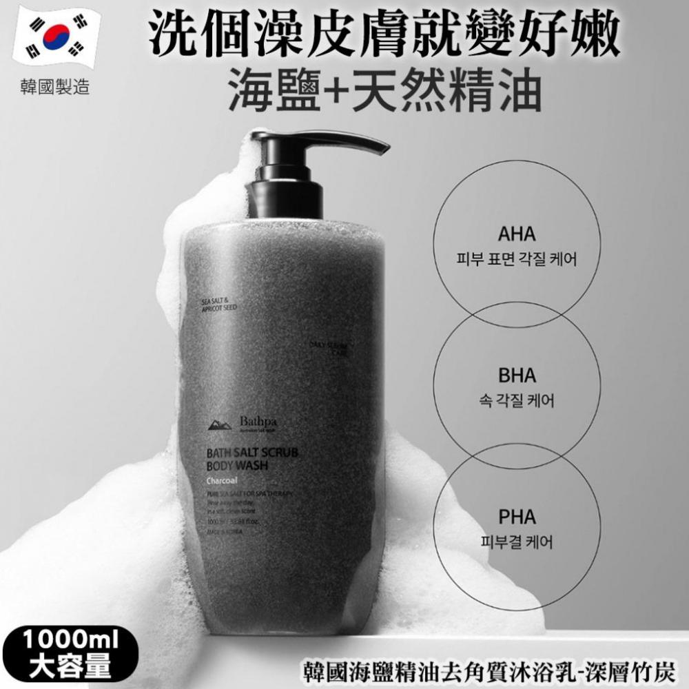 韓國海鹽精油去角質沐浴乳1000ml-深層竹炭
