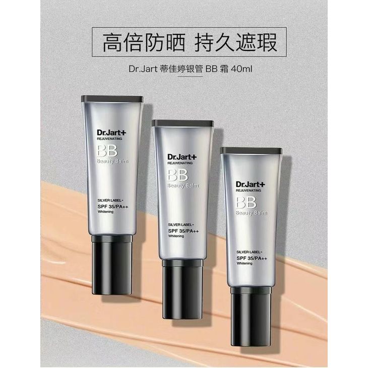 韓國直送Dr.jart 銀管BB霜 40ml 截單日期:24/6 到貨日期:7月尾 ⚠️貨期有早有遲 防曬係數:SPF35/PA++(提亮) 重量:110g 因為世足賽火出圈的BB霜,吃火鍋都不脫妝,集遮瑕、控油、提亮、防曬於一身實力的BB霜,如果膚色暗沈,有斑點,毛孔粗大,不用再去一層層疊加,只要薄薄一層BB就好,妝感非常自然不厚重,含有精華可以鎮定肌膚修復,敏感肌也可以放心使用。 會員價只供批發店主,需要提供証明方可享用會員價