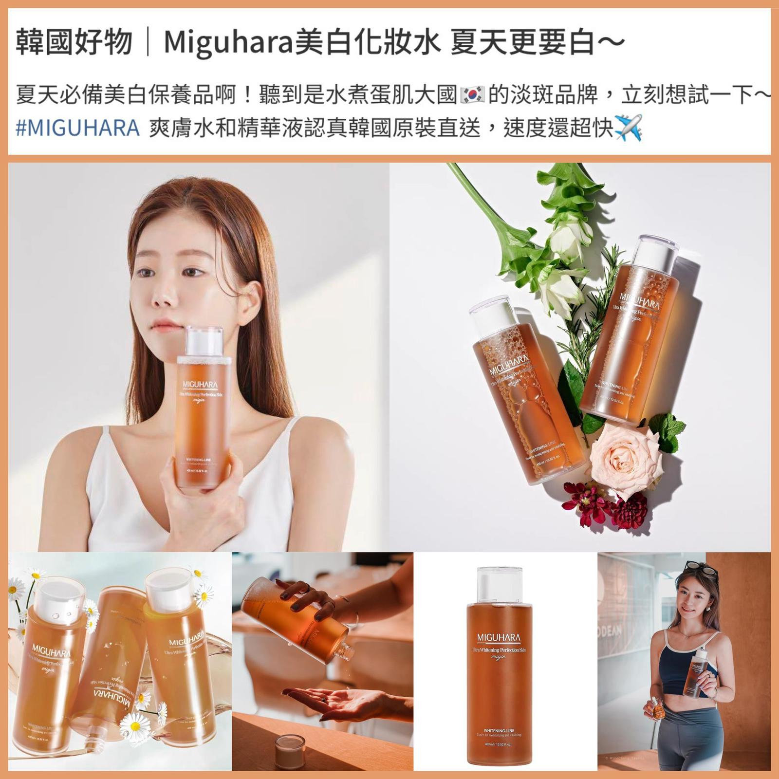 韓國 miguhara WHITENING-LINE爽膚水400ml 截單日期:4/10 到貨日期:10月尾 ⚠️貨期有早有遲 含玻尿酸、維他命B3、AHA及5種玻尿酸複合物,不同分子照顧到皮膚的每一層,深層保濕,保濕溫和美白祛黃提亮膚色。 會員價只供批發店主,需要提供証明方可享用會員價
