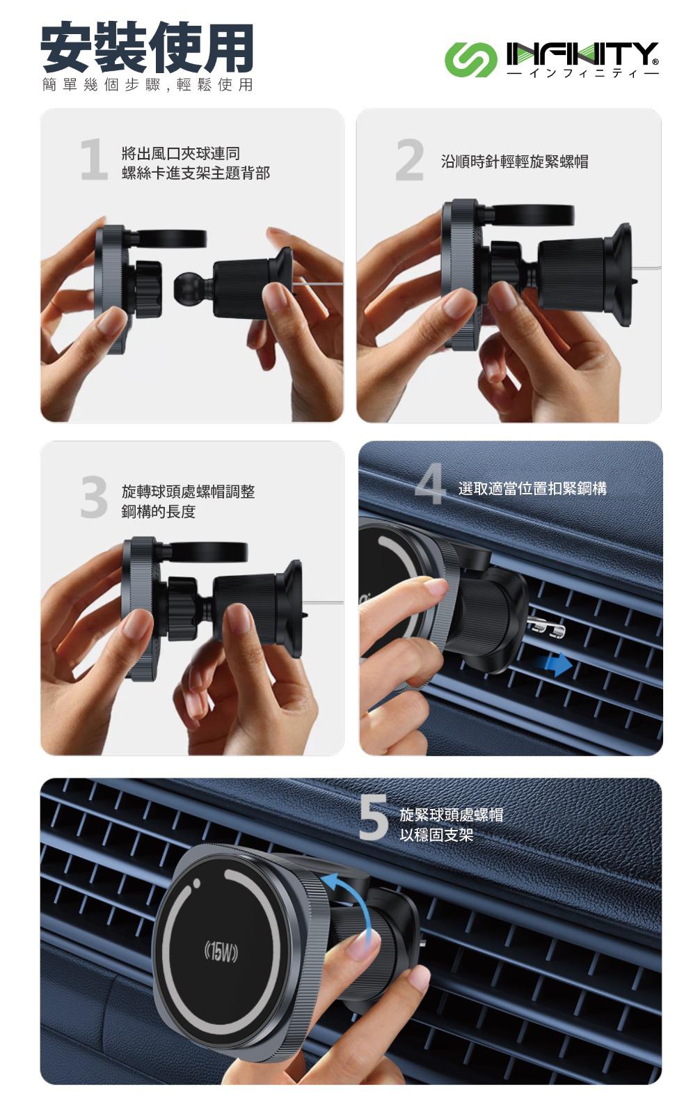 香港首款Qi2 15W 2合1車充 截單日期:30/8 到貨日期:9月尾 ⚠️貨期有早有遲 2合1 蘋果錶,15W磁吸充電座, INFINITY Qi2MC 。 支援Qi2 15W充電規格,每分鐘1%超級快,(iPhone12-15系列提供15W無線極限快充),強勁磁吸力 N54磁吸可承受負載最高900g,半導體制冷技術 充電速度增加100%Up。 配合磁吸功能手機可直放及橫放充電,Apple智能手錶無線充電最高2.5W,可以夾在冷氣風口位置然後固定。 Dimensions:110.5mm x 62mm x 62mm Weight:101g Input:Type-C: 5A/2A, 9V/2A, 12V/1.5A Output:Phone / Earphone Wireless: 15W(Max) Watch Wireless: 2.5W(Max) 一種顏色:黑色