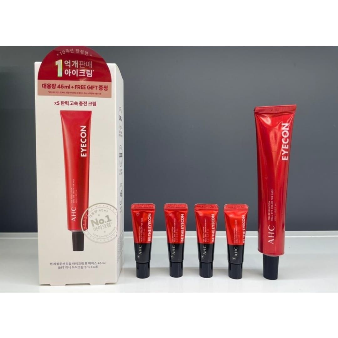 AHC 眼霜10周年限量版 截單日期:每月10,20,30 到貨日期:截單一個月 ⚠️貨期有早有遲 套裝: 加量45ml 中樣3ml*4 超越以往、2倍含量的膠原蛋白,1391種蛋質、幹細胞,細小分子更加快速吸收,内含澳洲堅果油、棕櫚油,更能加強保濕鎖水護理,讓妳的年齡不被一眼看穿。 ✔韓國供應商直購 會員價只供批發店主,需要提供証明方可享用會員價